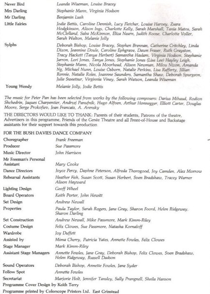 Page 2 Page 2 Back page 1 Programme: Peter Pan, 1984 Back Performance and Choreography page 10
